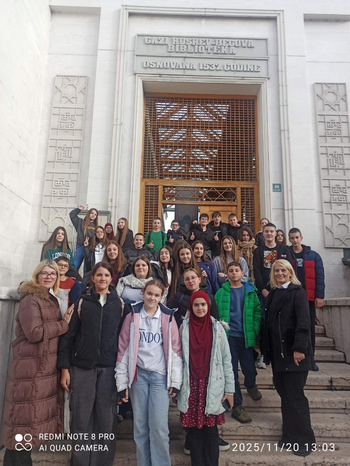 Učenici sedmog razreda OŠ “Meša Selimović” u četvrtak, 20.11.2025. godine, u pratnji svojih razrednica, realizovali su edukativnu posjetu institucijama od velikog kulturnog značaja našeg grada. Obišli su Zemaljski muzej, Bošnjački institut, Gazi Husrev-begovu biblioteku, Despića kuću i Brusa bezistan, gdje su imali priliku upoznati bogatu kulturno-historijsku baštinu Bosne i Hercegovine.